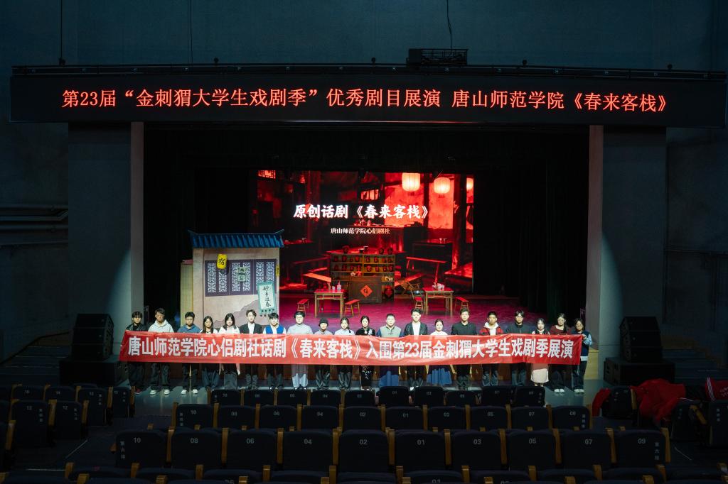 2025年11月29日至30日,yl7703永利心侣剧社创排的抗战题材话剧《春来客栈》亮相北京香河园地区文化中心多维剧场,作为第23届“金刺猬大学生戏剧季”入围优秀剧目完成精彩展演。这是心侣剧社成立27年来第5次入围该戏剧季,也是本届赛事中河北省高校唯一入围展演的剧目,为永利官网校园文化建设成果与唐山城市形象宣传写下了浓墨重彩的一笔。